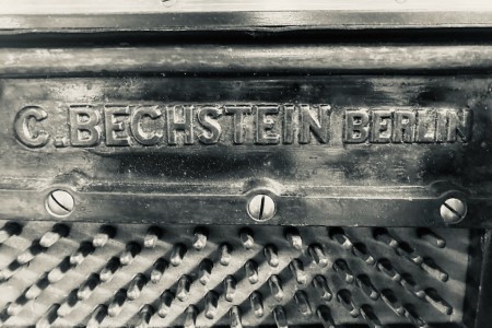 私が初めてベヒシュタインに出会ったのは、父の工房に1924年製のアップライトピアノ「ベヒシュタイン・モデル9」が引き取られたことでした。100年ほど前のピアノですので、修復するにあたってメーカーの知識や技術を学びたいと思い、ベヒシュタイン技術者の会に入会しました。ベヒシュタインの技術を学ぶなかで、その音色の豊かさ・立ち上がりの速い透明感のある響きに魅了されていきました。※現在「モデル9」は修復中です。(執筆 具志堅祐丈 / 以降も同様 )